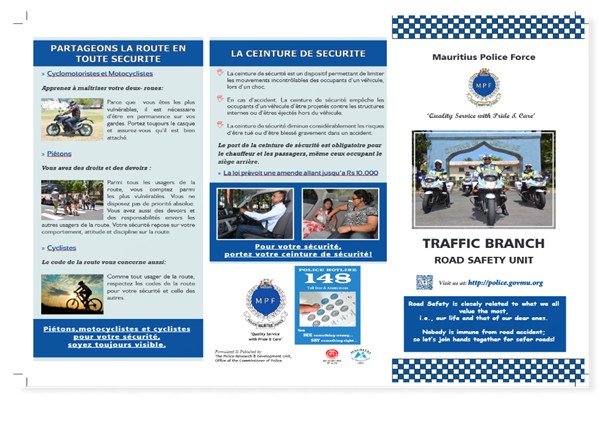 Everyday thousands of people are killed and injured on our roads worldwide. In Mauritius, an average of one hundred and four (140) persons is killed on our roads each year. For a population of about 1.3 million people, having more than 700,000 vehicles on the roads coupled with a bad road attitude, the road security risk is huge. Likewise, Road Safety has always been a matter of great concern for the Mauritius Police Force, particularly the Traffic Branch.